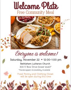 Bethlehem Lutheran Church – Welcome Plate + Add to Google Calendar + iCal / Outlook export 00 days 00 hours 00 minutes 00 seconds Date Nov 22 2025 Time 12:00 pm - 1:00 pm Location Bethlehem Lutheran Church Share this event