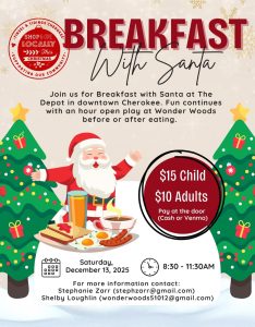 Breakfast with Santa + Add to Google Calendar + iCal / Outlook export 00 days 00 hours 00 minutes 00 seconds Date Dec 13 2025 Time 8:30 am - 11:30 am Location Cherokee Depot Share this event