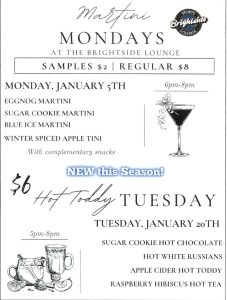 Brightside Lounge – Martini Monday + Add to Google Calendar + iCal / Outlook export 00 days 00 hours 00 minutes 00 seconds Date Jan 05 2026 Time 6:00 pm - 8:00 pm Location Brightside Lounge Share this event
