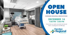 CRMC – Renovations Open House + Add to Google Calendar + iCal / Outlook export 00 days 00 hours 00 minutes 00 seconds Date Dec 14 2025 Time 1:00 pm - 3:00 pm Location Cherokee Regional Medical Center Share this event